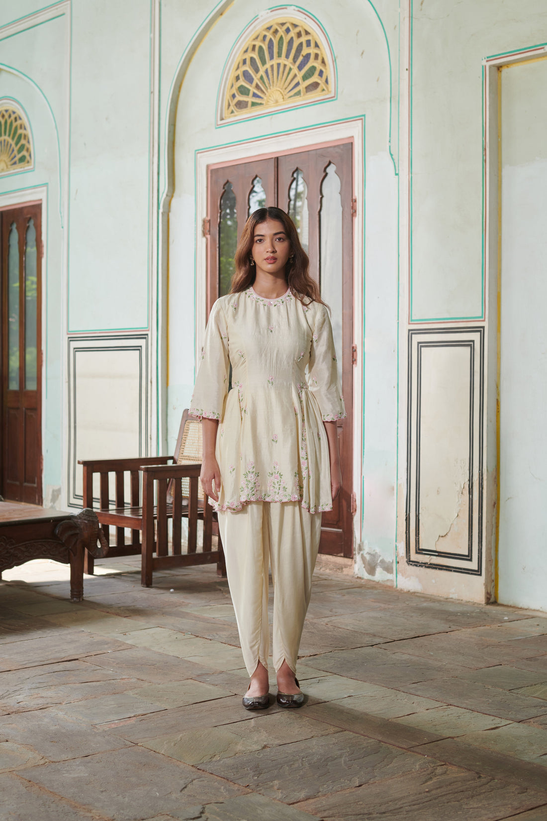 Varnika (वर्णिका) - Floral Embroidered Dhoti Set