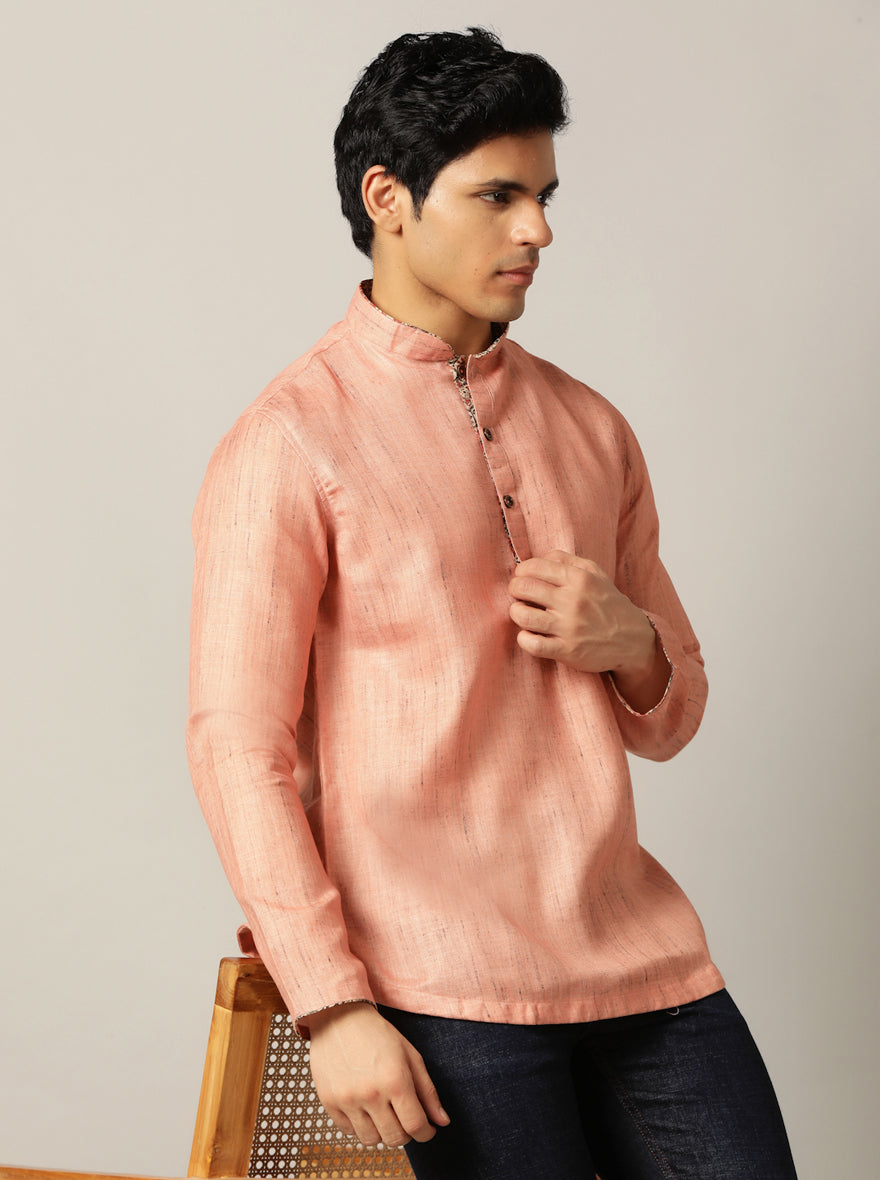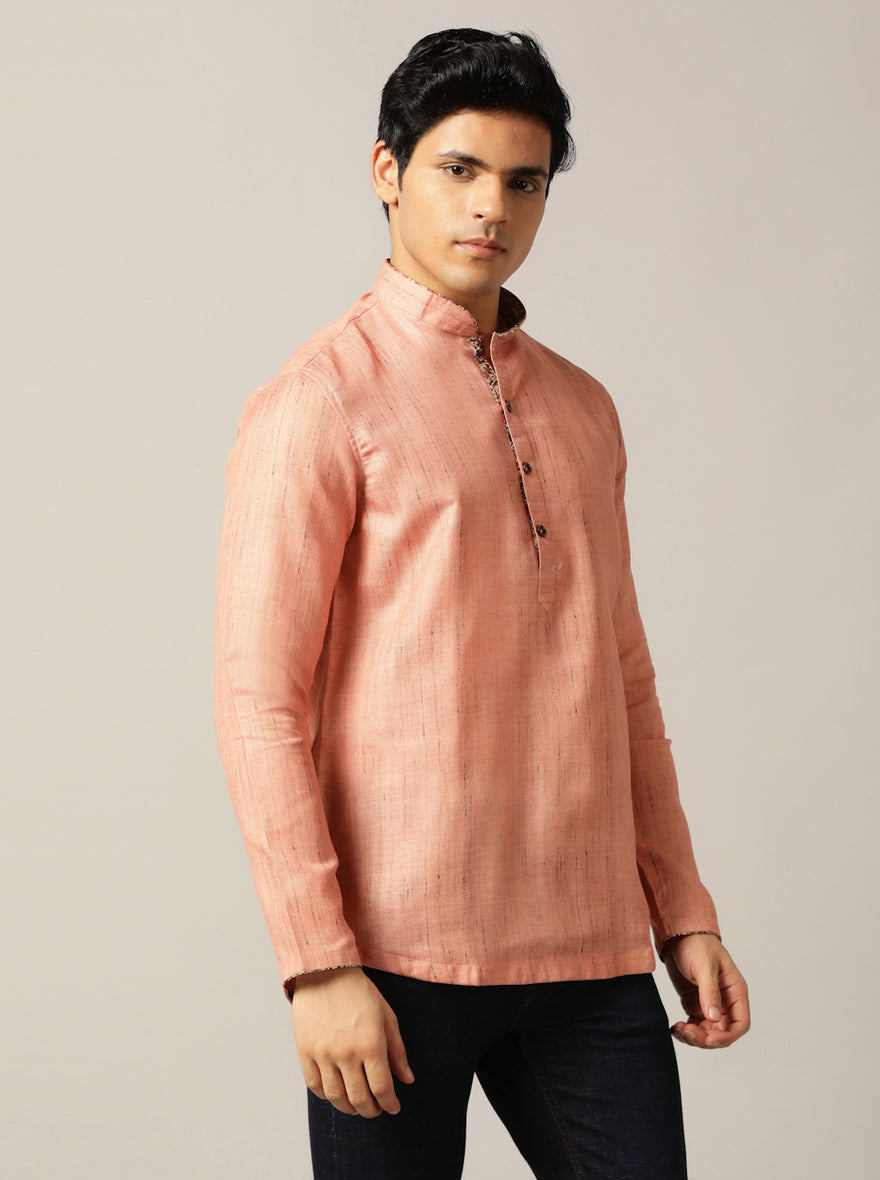 Dark Peach Self Textured Kurta For Men